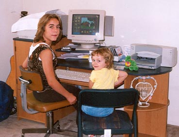 Got to learn those computers. My 12 year old granddaughter helping 3 year old niece.